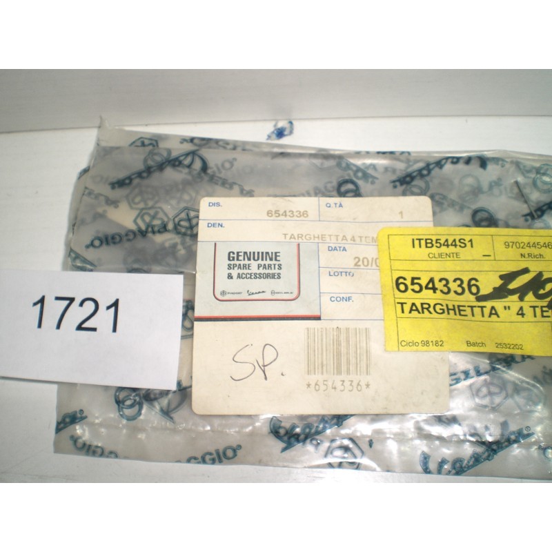 TARGHETTA EMBLEMA ADESIVA "4 TEMPI"ORIGINALE PIAGGIO LIBERTY COD-654336