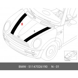 STRISCIA DECORATIVA COFANO MOTORE LATO DX ORIGINALE ADATTO A MINI R50 R52 CODICE 51147026188