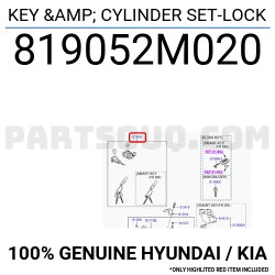 SERRATURA COMPLETA DI CHIAVE ORIGINALE ADATTO A HYUNDAI COUPE' DAL 2008 AL 2016 CODICE 819052M020 81905-2M020.